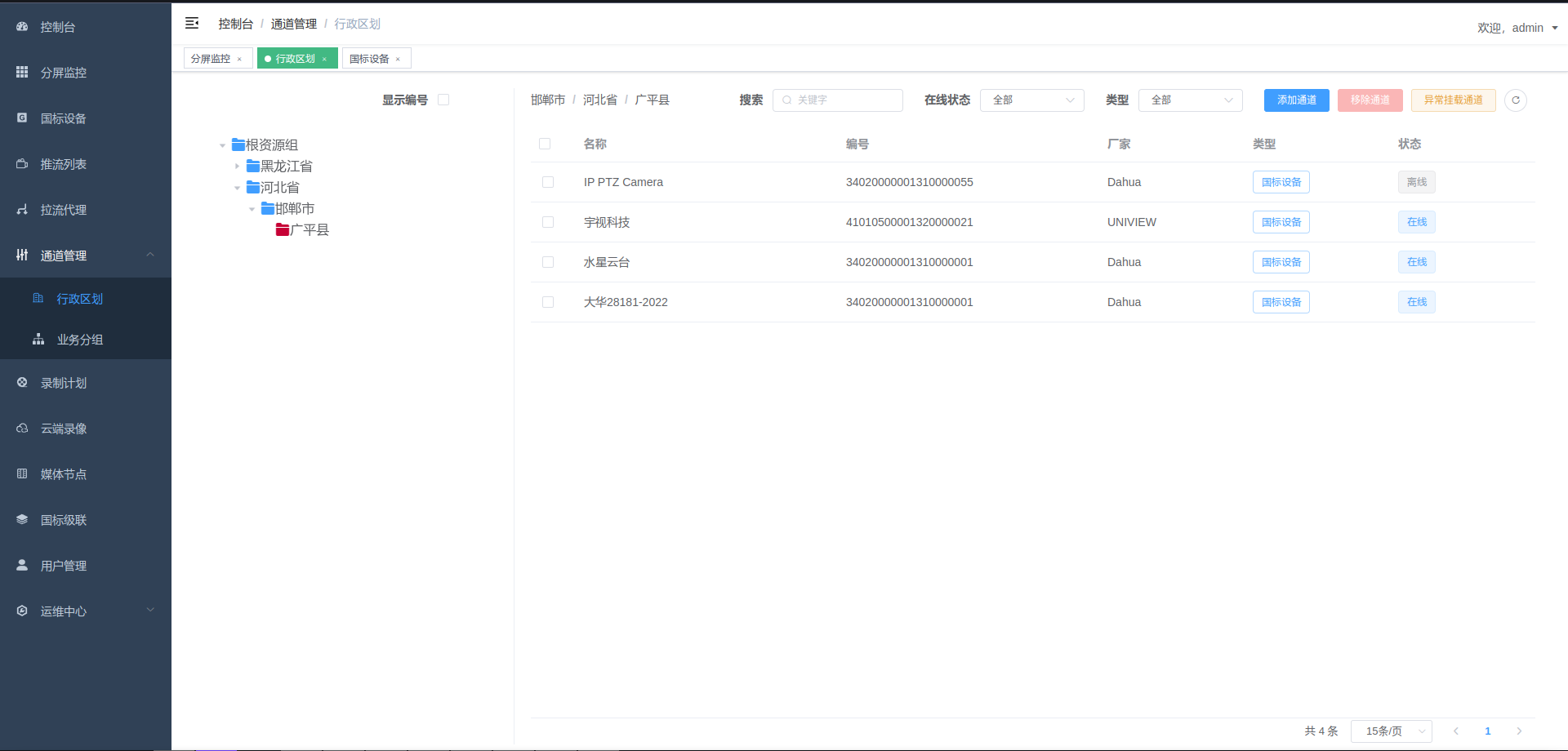 分屏播放 国标设备列表