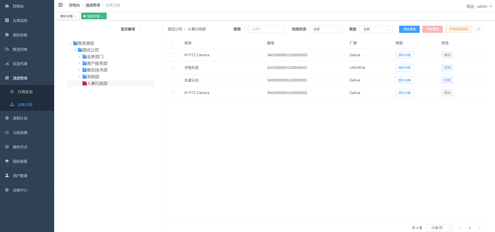 • 支持国标设备(摄像机、平台、NVR等)设备接入